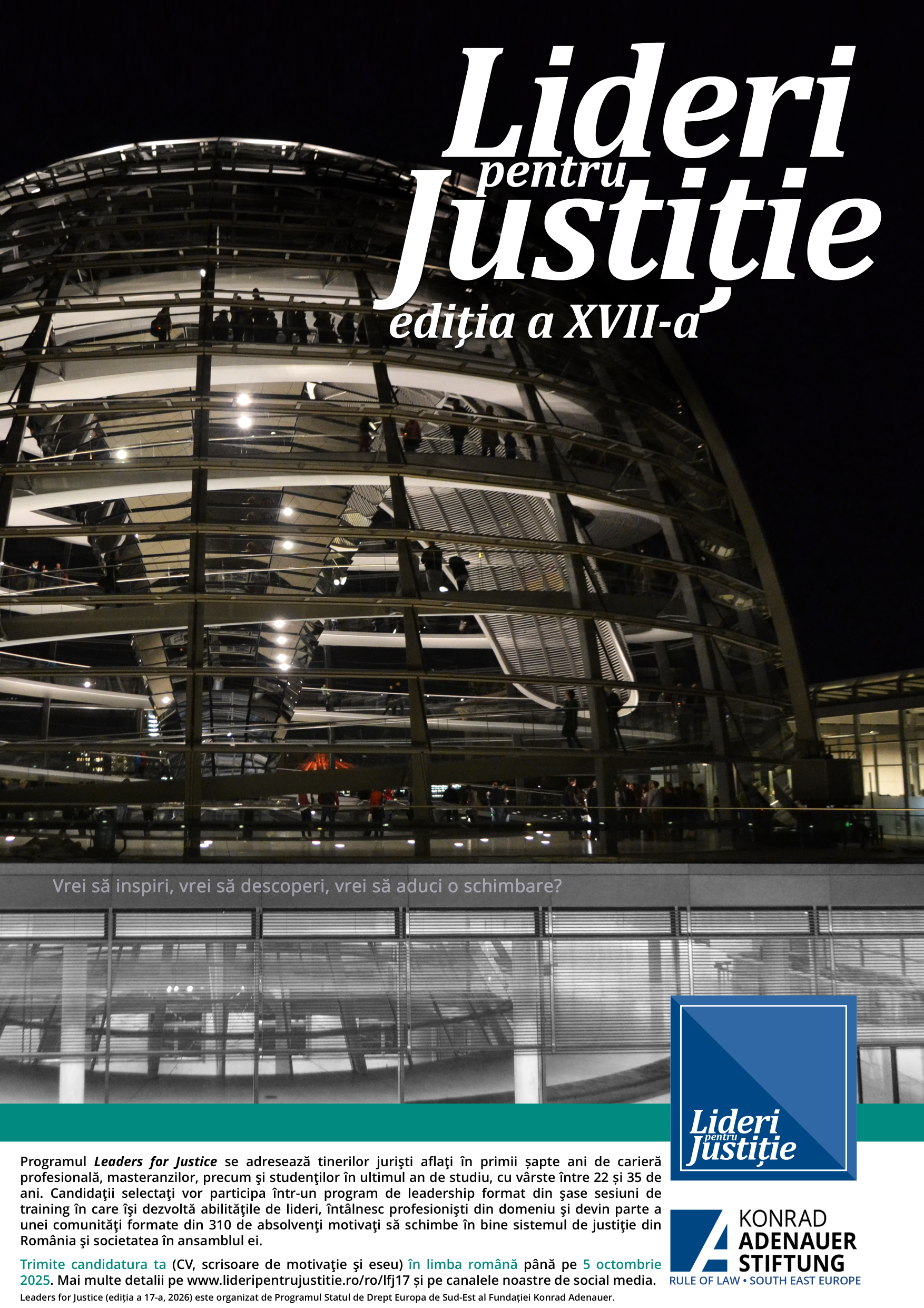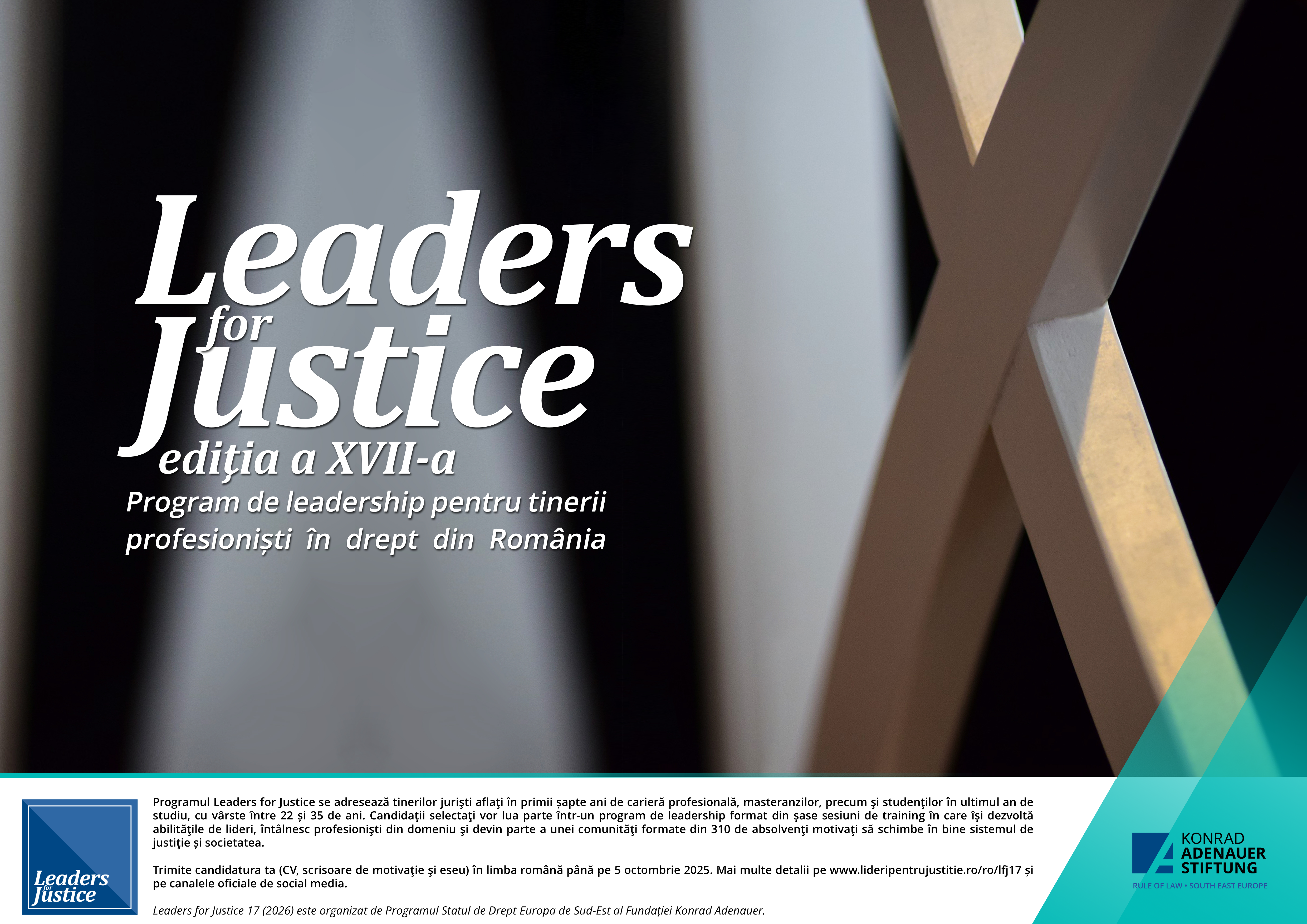 Send your application to lideripentrujustitie@gmail.com by October 6, 2024, 23:59.