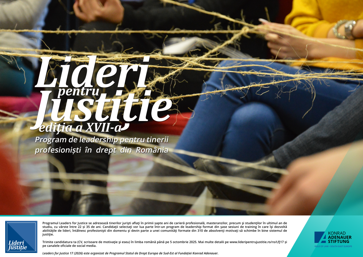 Leaders for Justice is a community of young lawyers in Romania that brings together professionals from various fields of law and encourages dialogue and cooperation between the legal professions.